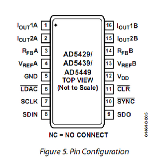 最后在一個(gè)陽(yáng)光明媚的下午,突然間我想起啦上次調(diào)試AD7799出現(xiàn)的問題就是因?yàn)镃S的信號(hào)有問題,我看了看AD5439的時(shí)序圖,發(fā)現(xiàn)SYNC貌似和CS有同樣的功能,我直接把SYNC拉低,輸出電壓時(shí)0v,貌似不是這里的問題,我又把SYNC接回單片機(jī)引腳,這時(shí)候竟然奇跡的電壓變化啦,我試了好幾個(gè)數(shù)據(jù)電壓輸出卻是變啦,但是沒試幾次就不管用啦,又回到了-5v。這時(shí)候我隱約覺得是不是SYNC的時(shí)序真的有問題呢?重看時(shí)序,發(fā)現(xiàn)問題啦!!!