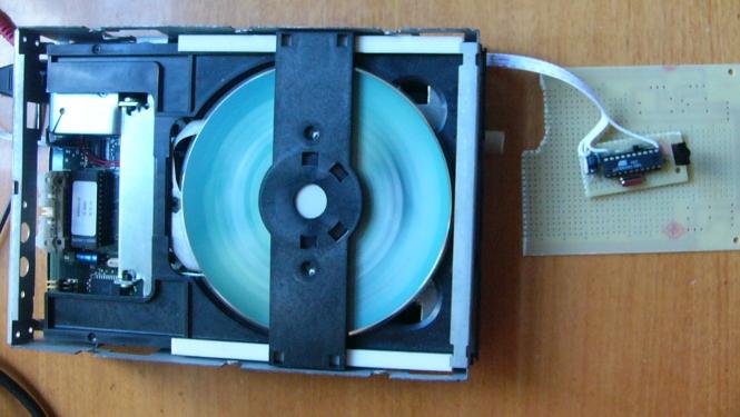 只好另辟蹊徑,從CDROM中引出兩個接口,一個是播放鍵,測量之,高電平有效。另一個是進倉檢測開關,處于低電位時,CDROM復位。