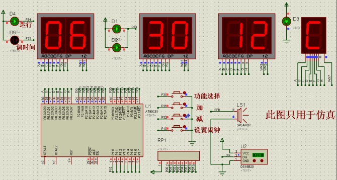 功能:時鐘顯示,溫度顯示,可調時間,按鍵發聲。
