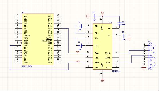 論壇新老朋友們。祝大家新年快樂。在新的一年開始的時(shí)候,給大家一點(diǎn)小小的玩意。工程師經(jīng)常碰到需要多個(gè)串口通信的時(shí)候,而低端單片機(jī)大多只有一個(gè)串行口,甚至沒有串口。這時(shí)候無論是選擇高端芯片,還是更改系統(tǒng)設(shè)計(jì)都是比較麻煩的事。我把以前搞的用普通I/O口模擬串行口通訊的程序拿出來,供大家參考,希望各位兄弟輕點(diǎn)拍磚。基本原理:我們模擬的是串行口方式1.就是最普通的方式。一個(gè)起始位、8個(gè)數(shù)據(jù)位、一個(gè)停止位。模擬串行口最關(guān)鍵的就是要計(jì)算出每個(gè)位的時(shí)間。以波特率9600為例,每秒發(fā)9600個(gè)位,每個(gè)位就是1/9600秒,約104個(gè)微秒。我們需要做一個(gè)精確的延時(shí),延時(shí)時(shí)間+對(duì)IO口置位的時(shí)間=104微秒。起始位是低狀態(tài),再延時(shí)一個(gè)位的時(shí)間。停止位是高狀態(tài),也是一個(gè)位的時(shí)間。數(shù)據(jù)位是8個(gè)位,發(fā)送時(shí)低位先發(fā)出去,接收時(shí)先接低位。了解這些以后,做個(gè)IO模擬串口的程序,就是很容易的事。我們開始。先上簡單原理圖:就一個(gè)MAX232芯片,沒什么好說的,一看就明白。使用單片機(jī)普通I/O口,232數(shù)據(jù)輸入端使用51單片機(jī)P3.2口(外部中斷1口,接到普通口上也可以,模擬中斷方式的串行口會(huì)有用。呵呵)。數(shù)據(jù)輸出為P0.4(隨便哪個(gè)口都行)。