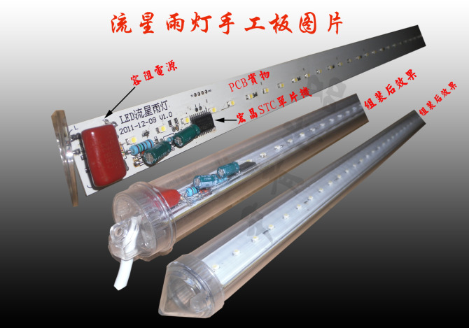 ,通過改變每一組LED的亮度來達到流星雨效果。