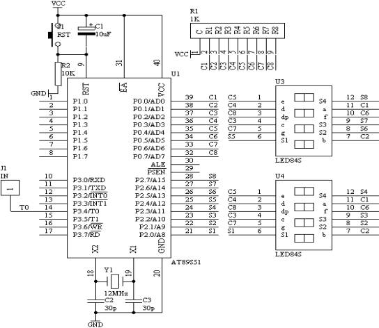 利用AT89S51單片機(jī)的T0、T1的定時計數(shù)器功能,來完成對輸入的信號進(jìn)行頻率計數(shù),計數(shù)的頻率結(jié)果通過8位動態(tài)數(shù)碼管顯示出來。要求能夠?qū)?-250KHZ的信號頻率進(jìn)行準(zhǔn)確計數(shù),計數(shù)誤差不超過±1HZ。