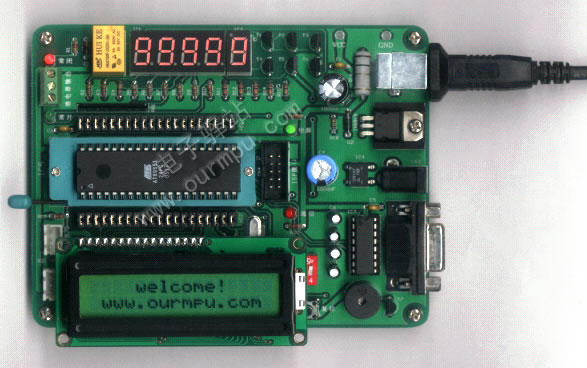 前面我們進行了液晶顯示一個字符“A”的實驗,接下來再來編一個稍復雜點的多字符顯示程序,相信你有了第一個程序的經驗,下面的程序也就沒有什么難度了,畢竟程序都差不多。下面程序實現兩行顯示:第1行顯示"welcme!",第2行顯示"www.ourmpu.com"。顯示效果見下圖4。
