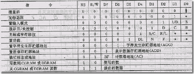 表2: 1602液晶模塊內部的控制器共有11條控制指令 |