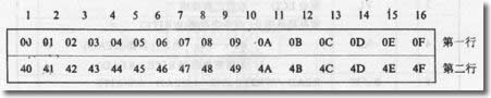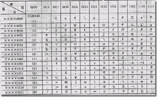 表1: CGROM和CGRAM中字符代碼與字符圖形對應關系 |