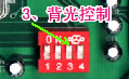 注意:液晶模塊背光須消耗電流約為50mA左右,S51增強型實驗板上設計了DIP微動開關來控制背光的開關,如右圖所示,當實驗板上的DIP開關(第3位)撥打到ON狀態時,液晶背光顯示,撥到OFF狀態時,背光關閉。 |