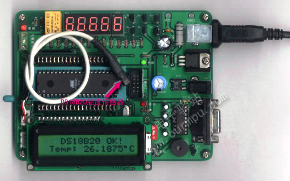 圖5:1602液晶顯示DS18B20高精度(4位小數)測溫效果 |