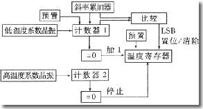 DS18B20的讀寫時序和測溫原理與DS1820相同,只是得到的溫度值的位數因分辨率不同而不同,且溫度轉換時的延時時間由2s減為750ms。 DS18B20測溫原理如圖3所示。圖中低溫度系數晶振的振蕩頻率受溫度影響很小,用于產生固定頻率的脈沖信號送給計數器1。高溫度系數晶振隨溫度變化其振蕩率明顯改變,所產生的信號作為計數器2的脈沖輸入。計數器1和溫度寄存器被預置在-55℃所對應的一個基數值。計數器1對低溫度系數晶振產生的脈沖信號進行減法計數,當計數器1的預置值減到0時,溫度寄存器的值將加1,計數器1的預置將重新被裝入,計數器1重新開始對低溫度系數晶振產生的脈沖信號進行計數,如此循環直到計數器2計數到0時,停止溫度寄存器值的累加,此時溫度寄存器中的數值即為所測溫度。圖3中的斜率累加器用于補償和修正測溫過程中的非線性,其輸出用于修正計數器1的預置值。