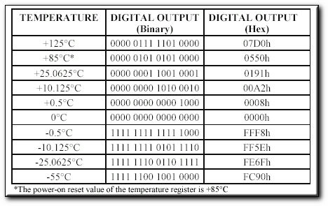 例如+125℃的數字輸出為07D0H,+25.0625℃的數字輸出為0191H,-25.0625℃的數字輸出為FF6FH,-55℃的數字輸出為FC90H。