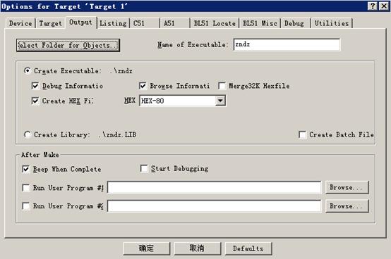 ,出現設置界面如圖9。選擇Output選項,然后在Creat Hex file選項前打鉤,然后點擊確定即可。