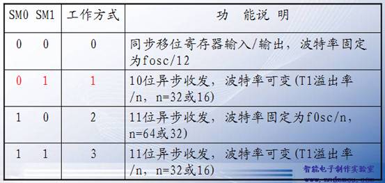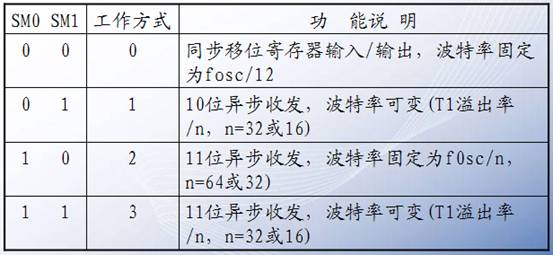 (1)SM0 SM1:串行口工作方式選擇位。其狀態組合所對應的工作方式如表9-1所示。