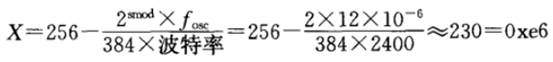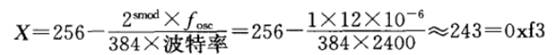 上式中,X為計數器的初值,M由定時器T1的工作方式所決定,即M=8、13或16,當定時器1作波特率發生器使用時,一般選用工作方式。之所以選擇工作方式2,是因為它具有自動加載功能,可以避免通過程序的反復裝入初值所引起的定時誤差,使波特率更加穩定。因此,對于定時器T1的工作方式2,其溢出率又可簡化為: