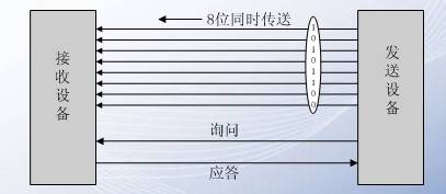 • 并行通信通常是將數據字節的各位用多條數據線同時進行傳送,如圖1所示。并行通信控制簡單、傳輸速度快;由于傳輸線較多,長距離傳送時成本高且接收方的各位同時接收存在困難。