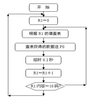 如圖13所示,利用AT89S51單片機的P0端口的P0.0-P0.7連接到一個共陰數碼管的a-h的筆段上,數碼管的公共端接地。在數碼管上循環顯示0-9數字,時間間隔0.2秒。