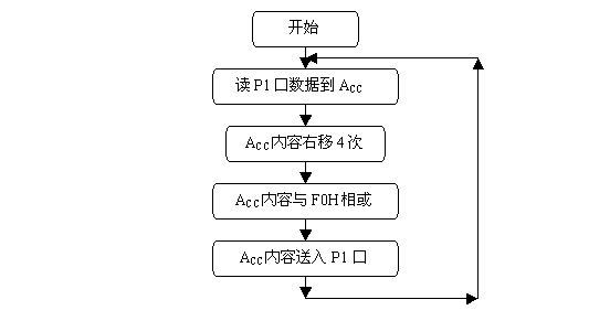 根據開關的狀態,由發光二極管L1-L4來指示,我們可以用SETB P1.X和CLR P1.X指令來完成,也可以采用MOV P1,#1111XXXXB方法一次指示。