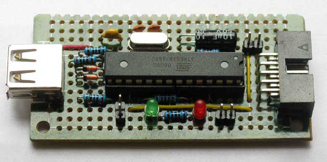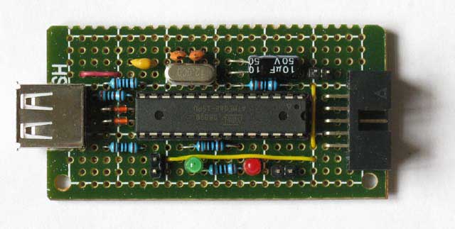 元件準(zhǔn)備好后,先得檢測(cè)下質(zhì)量,電阻的阻值、發(fā)光管的極性、電容是否有短路。要測(cè)試下兩個(gè)穩(wěn)壓管的穩(wěn)壓值是否正確。最最重要的是先把USB接口用延長(zhǎng)線(xiàn)接到PC上,然后用萬(wàn)用表測(cè)一下正極在哪,做個(gè)標(biāo)記,這樣就能搞清楚了D+、D-的位置,也不會(huì)接反電源了。免得焊好后發(fā)現(xiàn)錯(cuò)了極性反復(fù)焊,焊盤(pán)很容易脫落,也避免接反燒了元件。(我開(kāi)始用的是USB公頭接口,后來(lái)發(fā)現(xiàn)在板子上吃不上勁,稍一用力很可能會(huì)松脫。所以換成母口了)