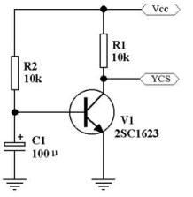 解決問題的方法一是增加單片機上電復位時間,使單片機能可靠自動復位;二是通過右圖所示的簡單電路來控制程序存儲器的選通時間。在上電初始階段,由于R2、C1的充電過程,使得三極管V1的集電極輸出YCS=“1”,使程序存儲器選通失效。當R2、C1充電延遲一段時間后,YCS由“l”變“0”,程序存儲器進入選通狀態,從而避免了由于單片機外圍電路上電時吸收電流過大而造成的非正常工作狀態。實踐證明,該方法行之有效。