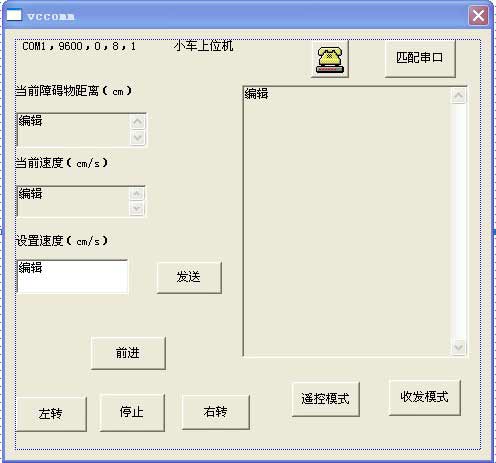 做了一個星期左右時間的準備工作,做壞了幾個程序,藍屏很多次之后,前天晚上斷網后開工,搞到凌晨四點鐘,終于把雛形做出來了,昨天下午主要的目的是要把編輯框里的數據(人工設置小車速度)讀到程序中再發到單片機上,但是書上并沒有把編輯框的數據讀到程序中的函數,找了很久找到