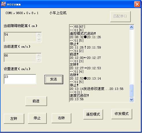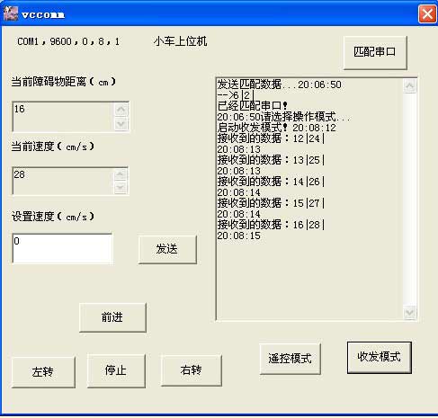 用了一下不錯,可以用。最難的就是發送了,因為我使用了很多按鈕每次執行按鈕都要有返回值確認單片機是否是正常收到,為了簡便起見我PC發到單片機上的都是1個字節,而單片機發到PC上的都是2個字節。而發送小車的速度值是不能超過1個字節,為了不和之前確認數發生檢測錯誤,所以我將編輯框的數據先加上11再在單片機里減去11。這個涉及到數據類型轉換的問題,int char VARIANT CString CByteArray,我終于明白了,為什么數據類型也是一門課。。。