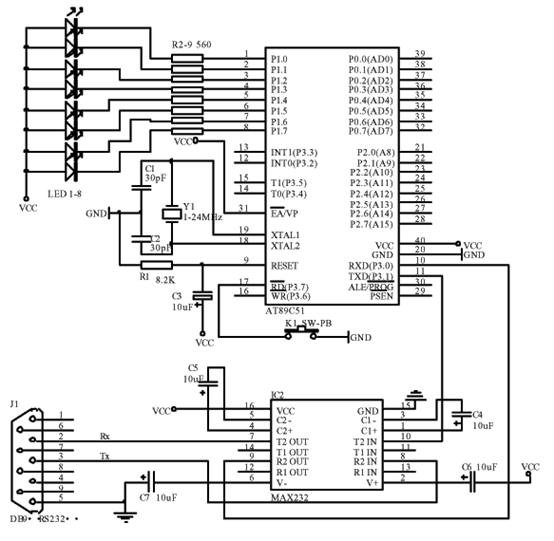 上面的實驗電路已加入了 RS232 串行口電路,只要稍微改變一下,就能變為具有仿真功能的 實驗電路。這個改變的關鍵就是把芯片改用 SST89C58,并在芯片中燒入仿真監控程序。 SST89C58 同樣也是一種 51 架構的單片機,它具有 24K+8K 的兩個程序存儲區,能選擇其 一做為程序的啟動區。只要把一個叫 SOFTICE.HEX 的監控程序用支持 SST89C58 的編程器燒 錄到芯片中(使用編程器或用 CA 版的 SST89C58 燒錄 SOFTICE 的具體方法和文件能參考 ),就 能把上 面 的電路升級為