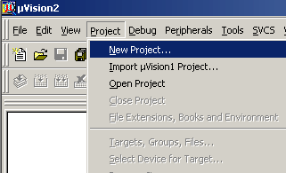 首先當(dāng)然是運(yùn)行KEIL軟件,接著按下面的步驟建立您的第一個項(xiàng)目: