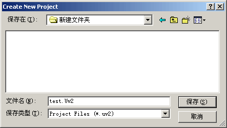 (1)點(diǎn)擊 Project 菜單,選擇彈出的下拉式菜單中的 New Project,如圖 1-2。接著彈 出一個標(biāo)準(zhǔn) Windows 文件對話窗口,如圖 1-3。在“文件名”中輸入您的第一個 C 程序項(xiàng) 目名稱,這里我們用“test”。“保存”后的文件擴(kuò)展名為 uv2,這是 KEIL uVision2 項(xiàng)目文件擴(kuò)展名,以后能直接點(diǎn)擊此文件以打開先前做的項(xiàng)目。