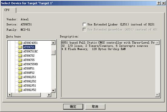 (2)選擇所要的單片機(jī),這里選擇常用的 Ateml 公司的 AT89c51。而且本單片機(jī)c語言教程里的大部分程序都是基于此芯片的,此時屏幕如圖 1-4 所示。AT89c51 有什么功能、特點(diǎn)呢?看圖中右邊有簡單的介紹。完成上面步驟后,就可 以進(jìn)行程序的編寫了。