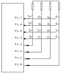 確定矩陣式鍵盤上何鍵被按下介紹一種“行掃描法”。
