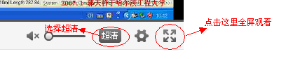 點擊播放按待視頻載入后選擇“超清“(如下圖所示)然后點擊最右邊的最大化按鈕才可看清晰的視頻: